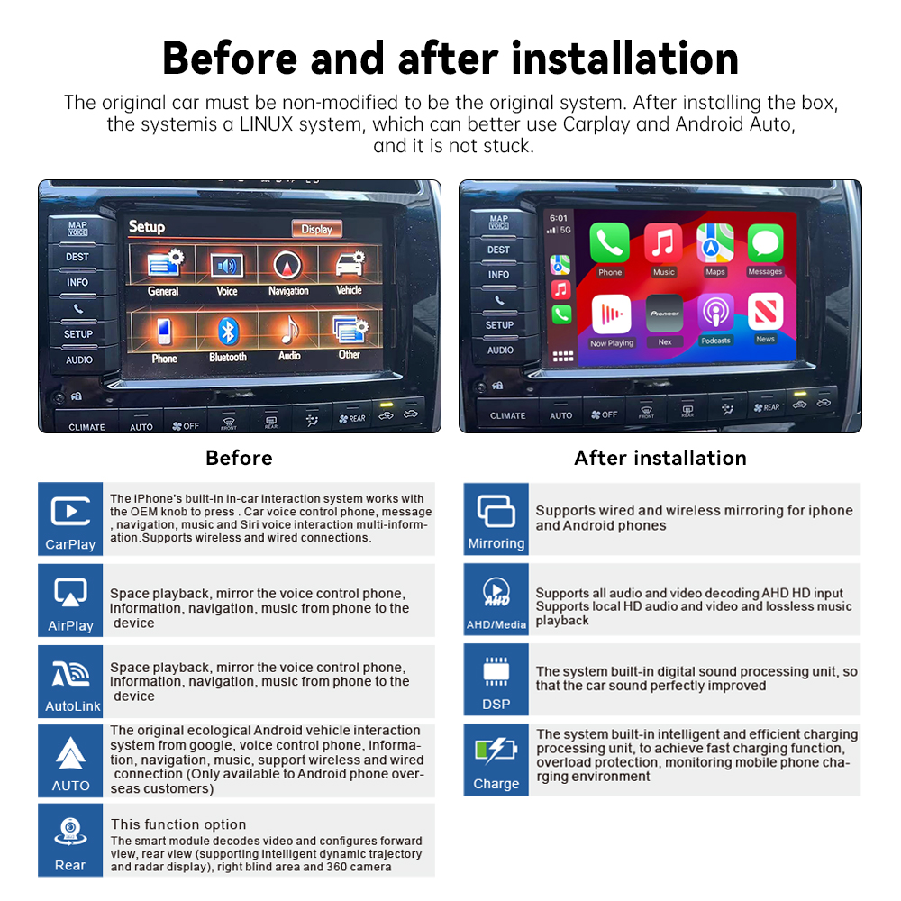 Land Cruiser 2005-2023 Original Navigation Upgrade Carplay Android Auto Video Interfaces
