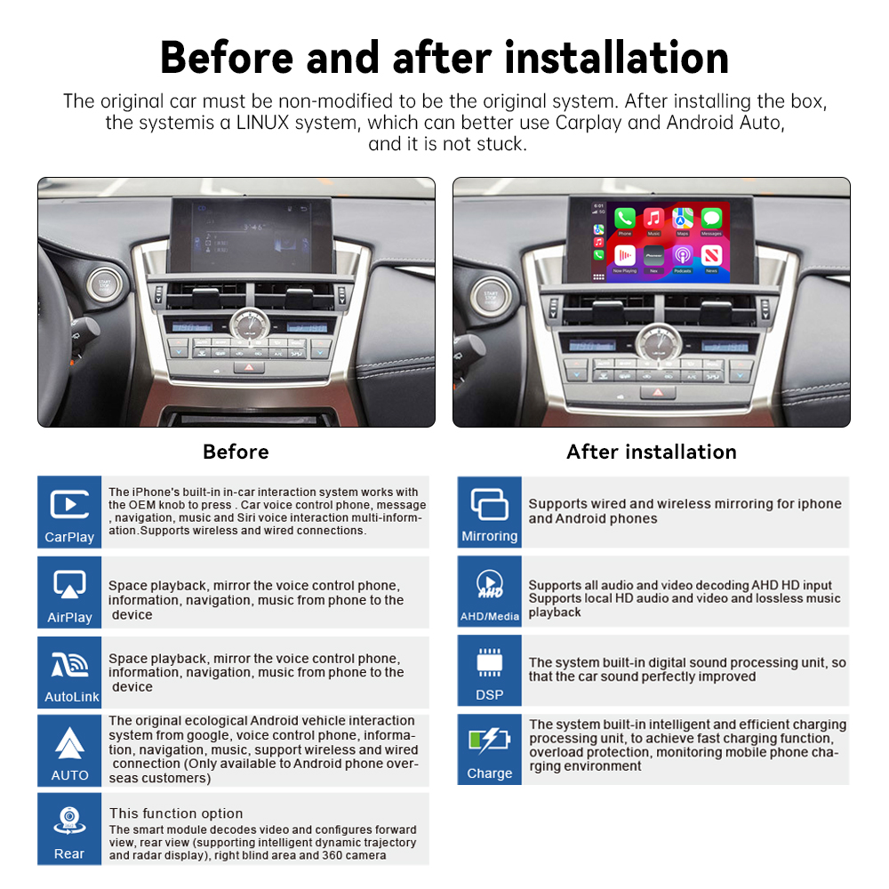 It provides a more convenient and intelligent driving environment, allowing drivers to easily access various information and services, and enhancing the comfort and convenience of driving. For example, in Germany, many high-end car brands come with ALPHARD VELLFIRE ANH10 CARPLAY as a standard feature, providing drivers with a luxurious and intelligent driving experience.